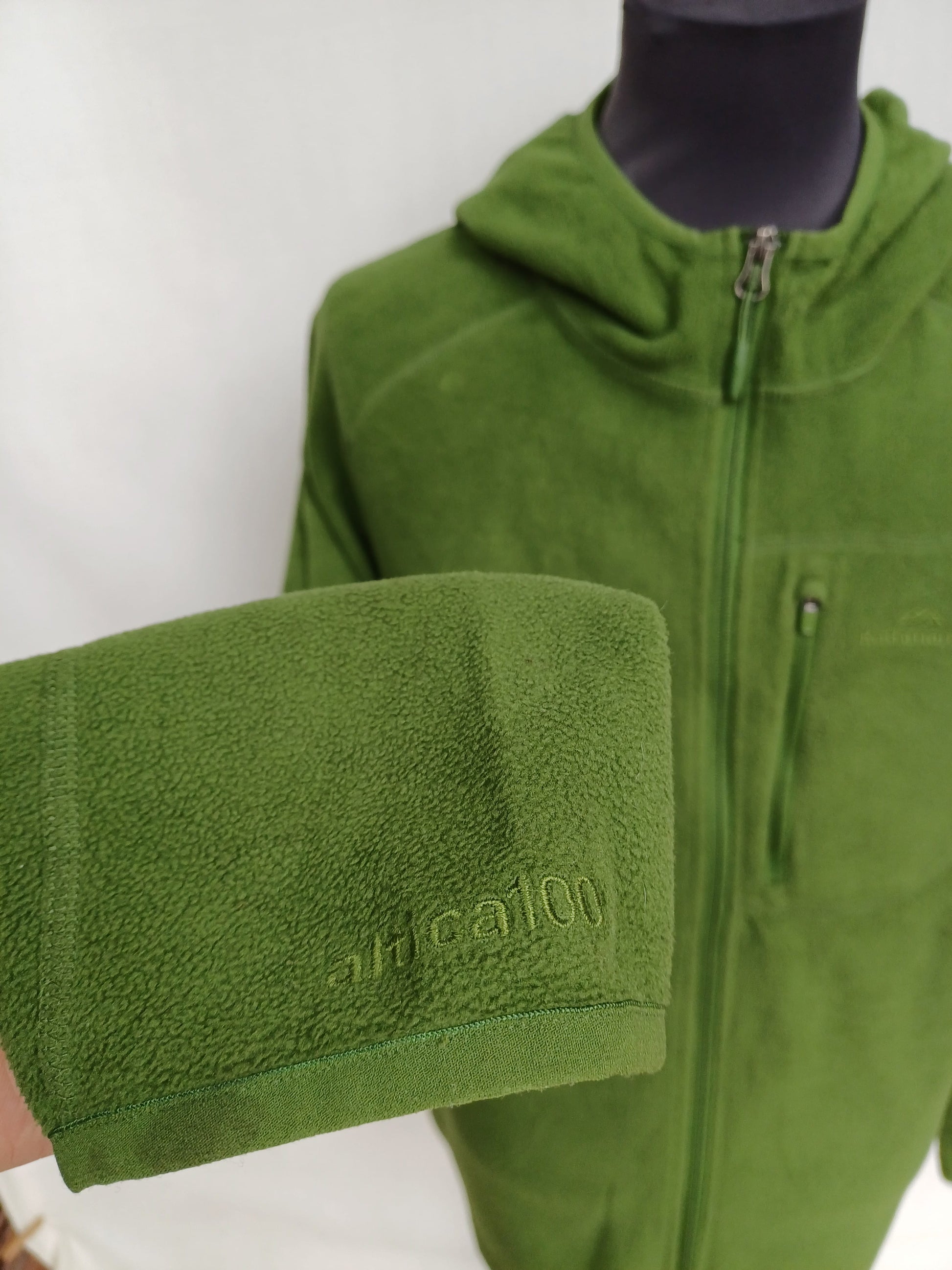 Get your hands on this wonderful Altica 100 dark green hooded full zip fleece jacket , it has polartec fabrics , it's made by Kathmandu.