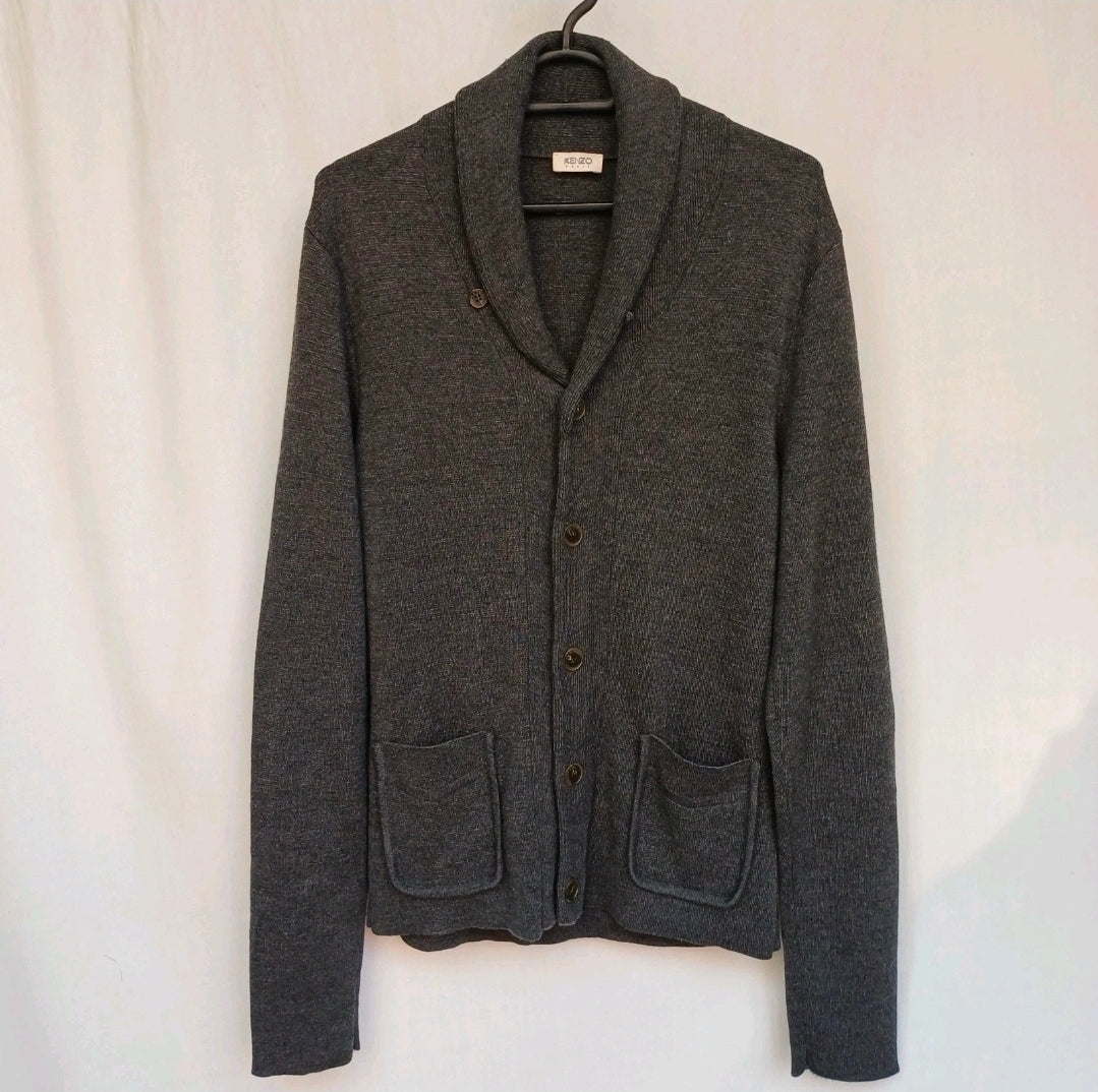 Kenzo Shawl Neck Pure Wool Button Cardigan Pockets Sweater Mens L