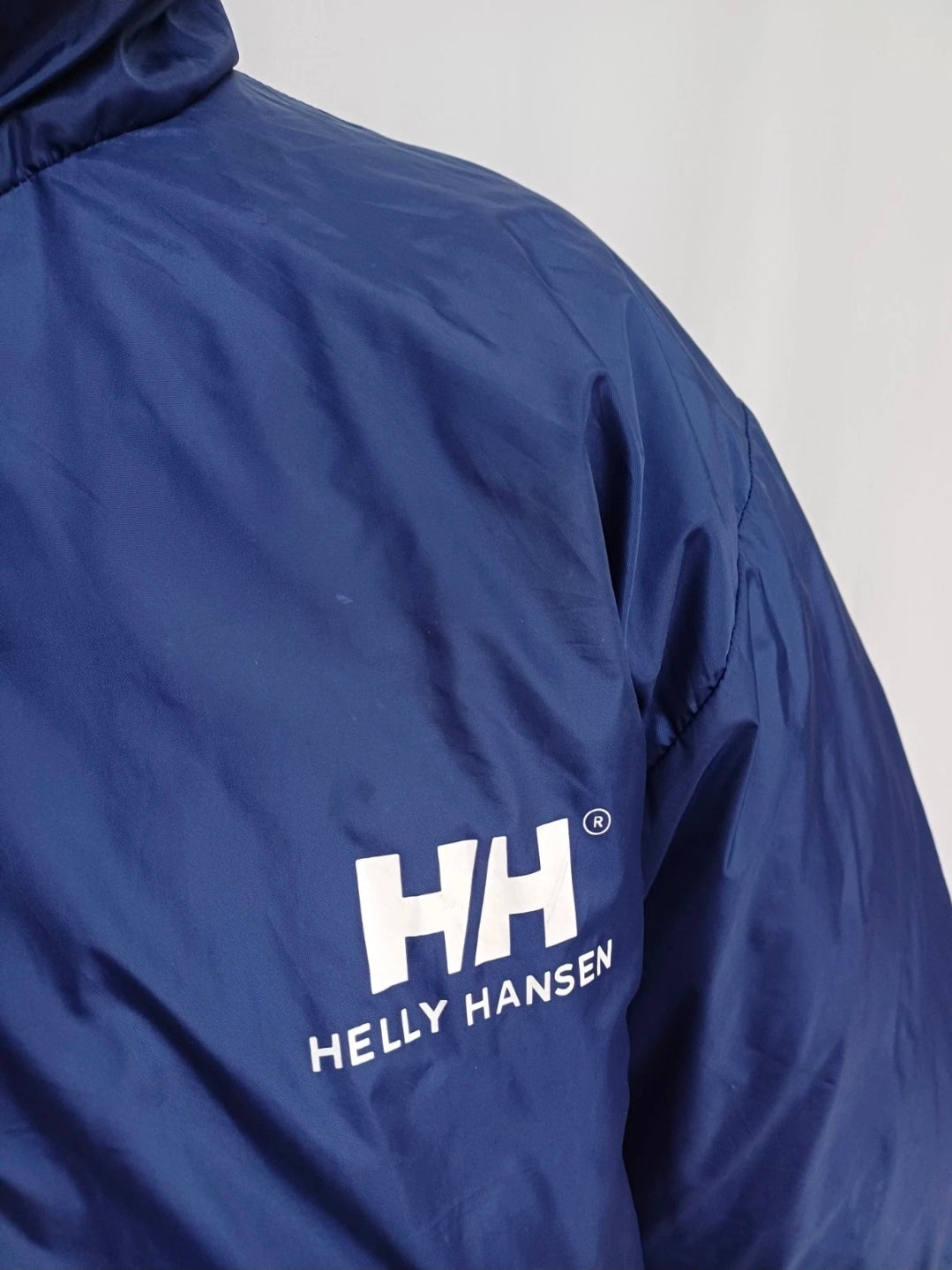 Get your hands on this wonderful navy blue warm down reversible puffer jacket made by Helly Hansen.