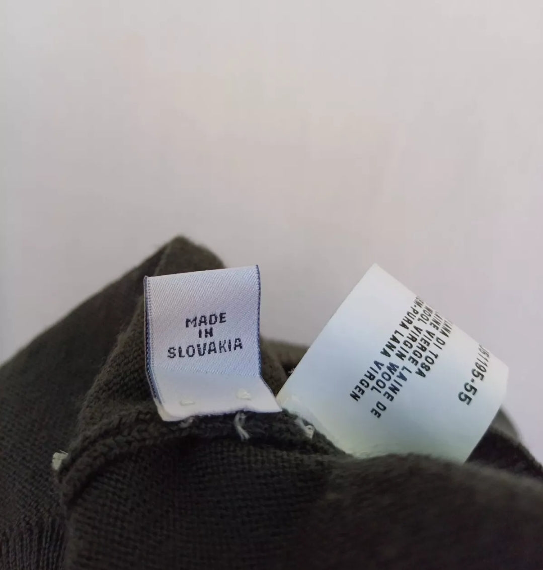 Get your hands on this wonderful V-neck wool sweater , it's made by Armani in Slovakia.