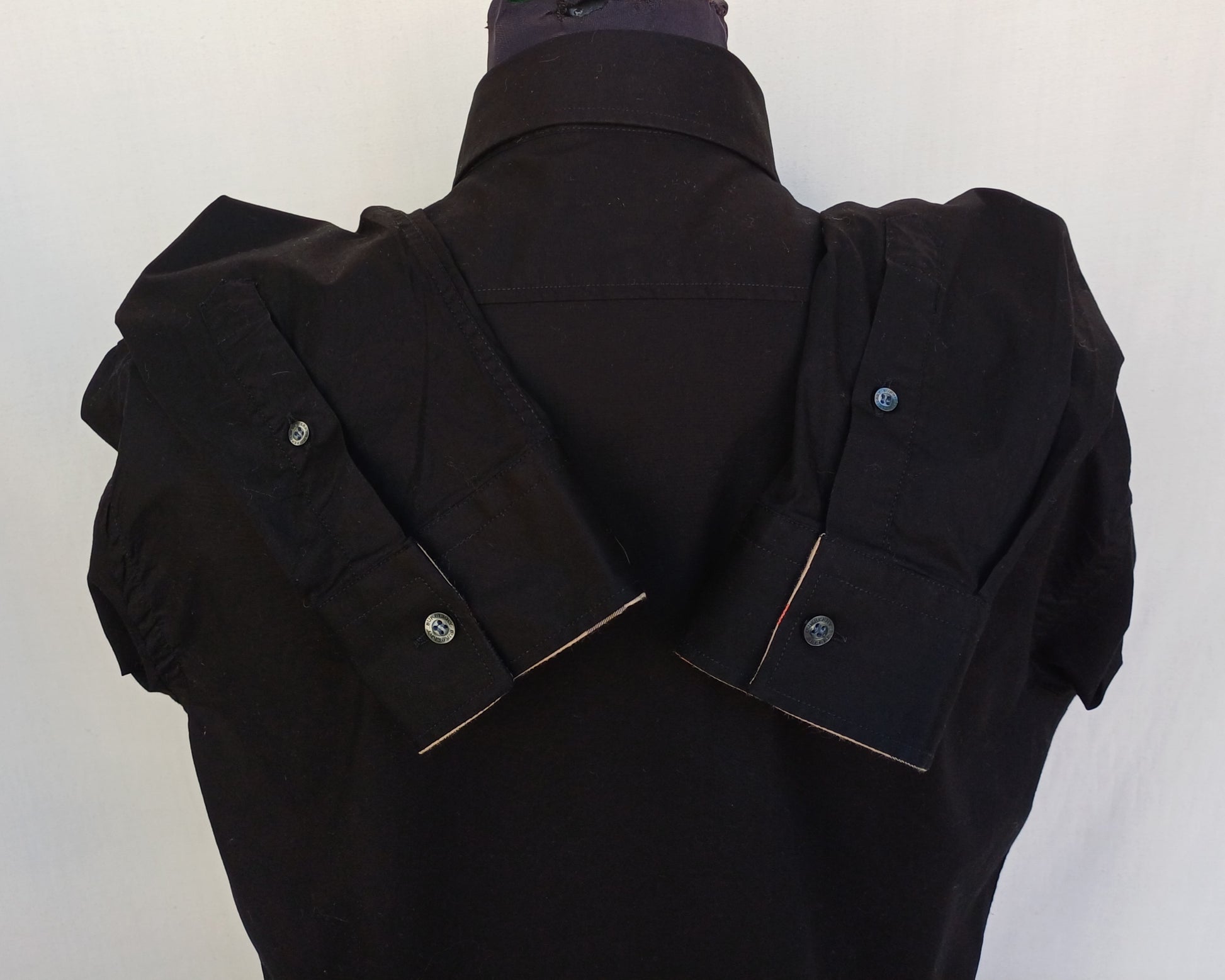 Get your hands on this wonderful black cotton button-up shirt in great condition , it has nova check lining of the collar and the cuffs , it's made by Burberry Brit in Turkey.