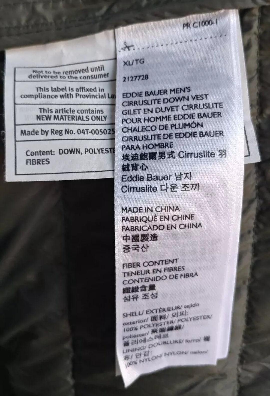 Eddie Bauer Mens Cirruslite EB650 Down Vest Dark Green Lightweight Size XL Top