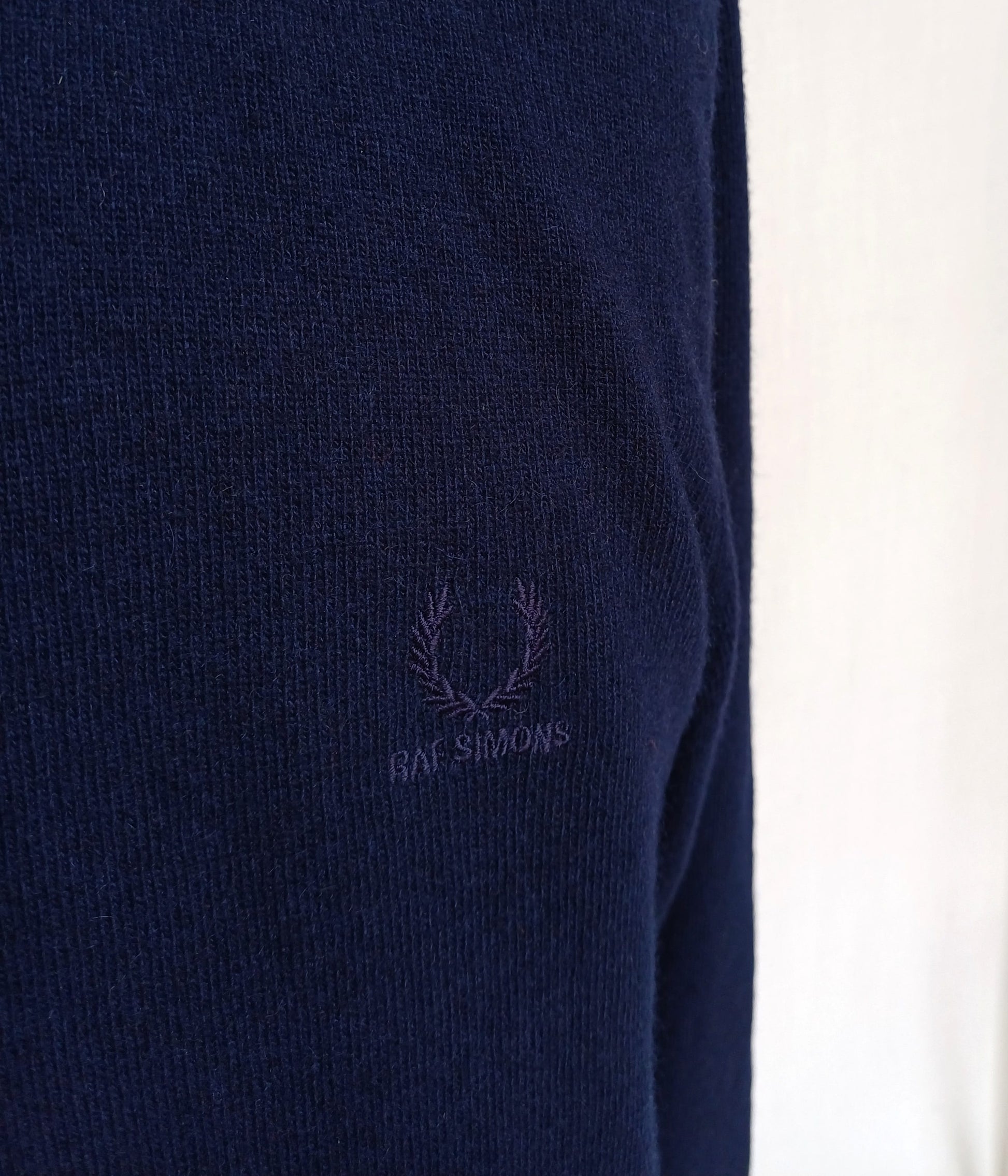 Get your hands on this wonderful wool and polyamide crew neck sweater , it's made by Fred Perry in collaboration with the Belgian fashion designer Raf Simons in Italy.