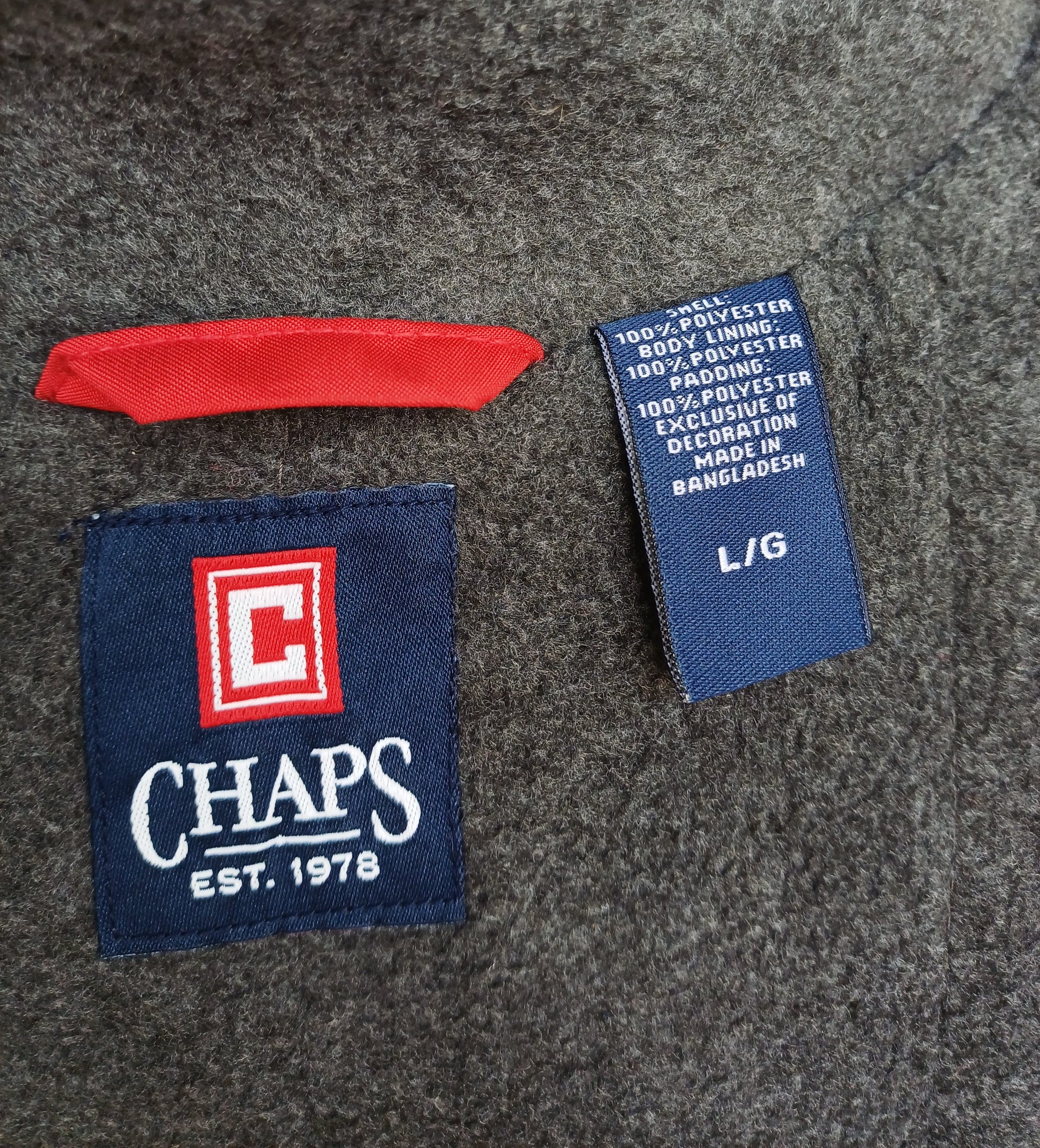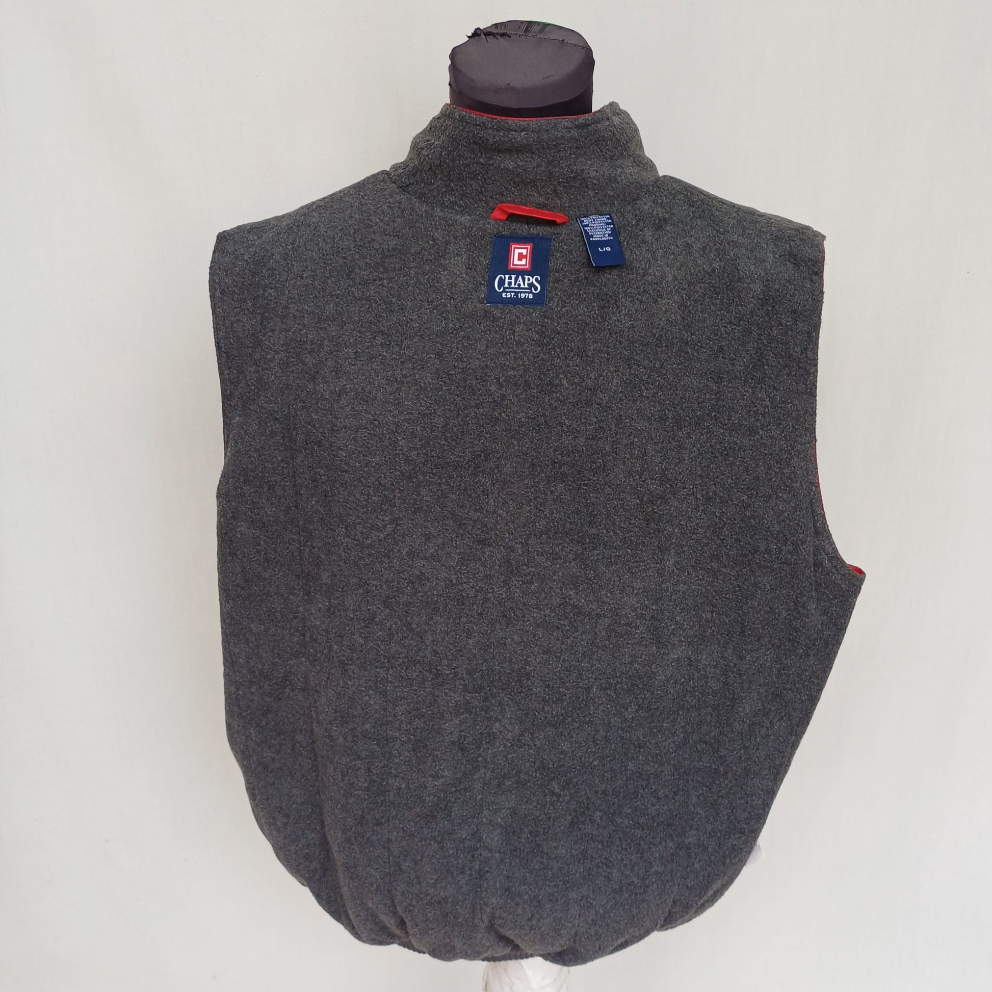 Get your hands on this wonderful red fleece lined winter vest , it's made by Chaps in Bangladesh.