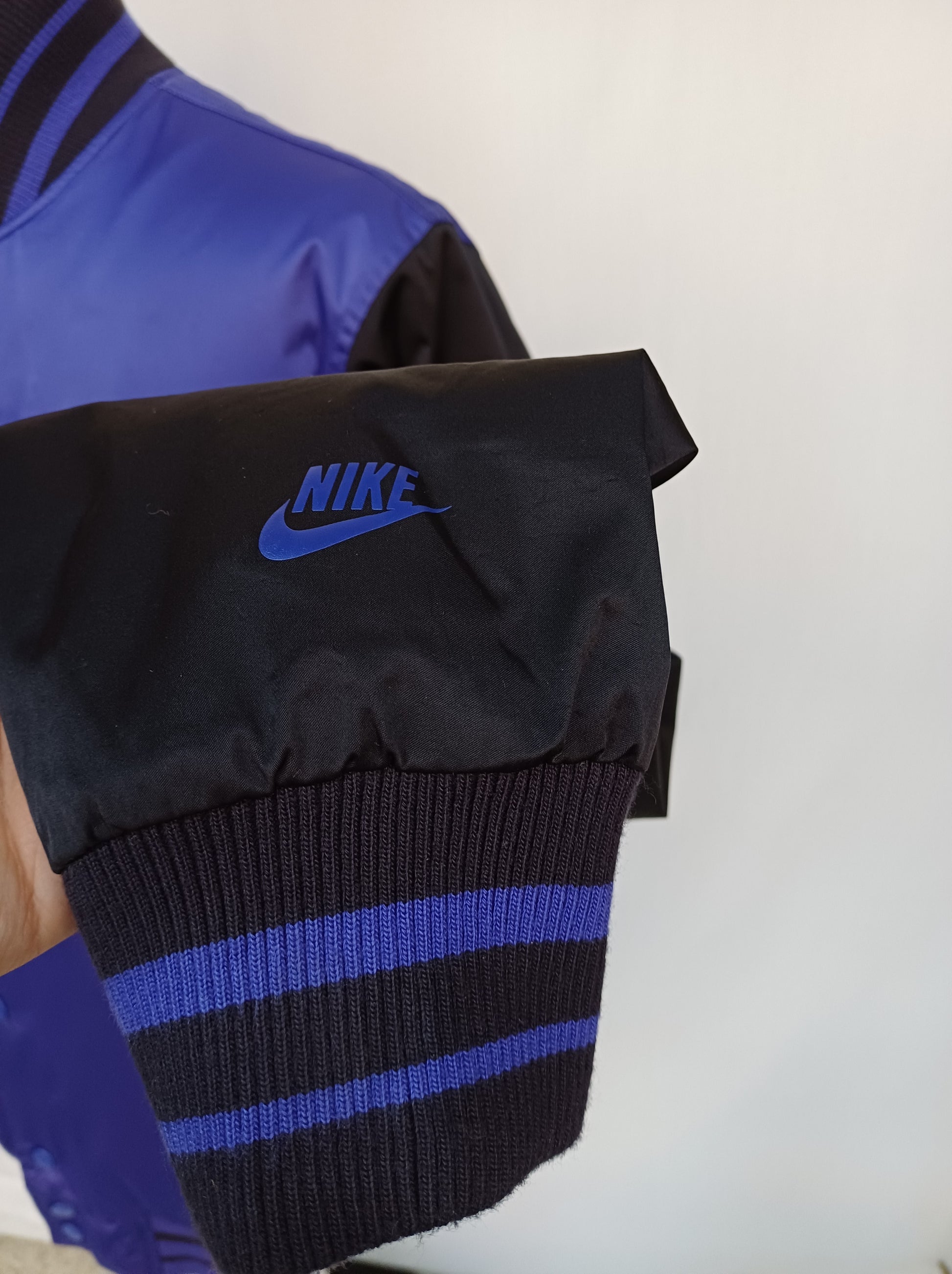 Get your hands on this wonderful nylon button varsity jacket in great condition , it has neon lining , it's made by Nike.